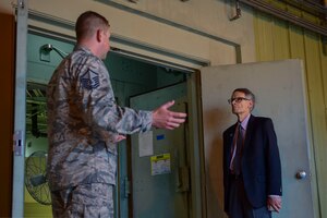 Buckley Air Force Base Airmen salute the United States flag during a Patriot Day ceremony Sept. 11, 2018, on Buckley AFB, Colorado. Team Buckley members held a ceremony in remembrance of the victims and families of those lost in New York, Pennsylvania and the Pentagon during the terrorist attacks on