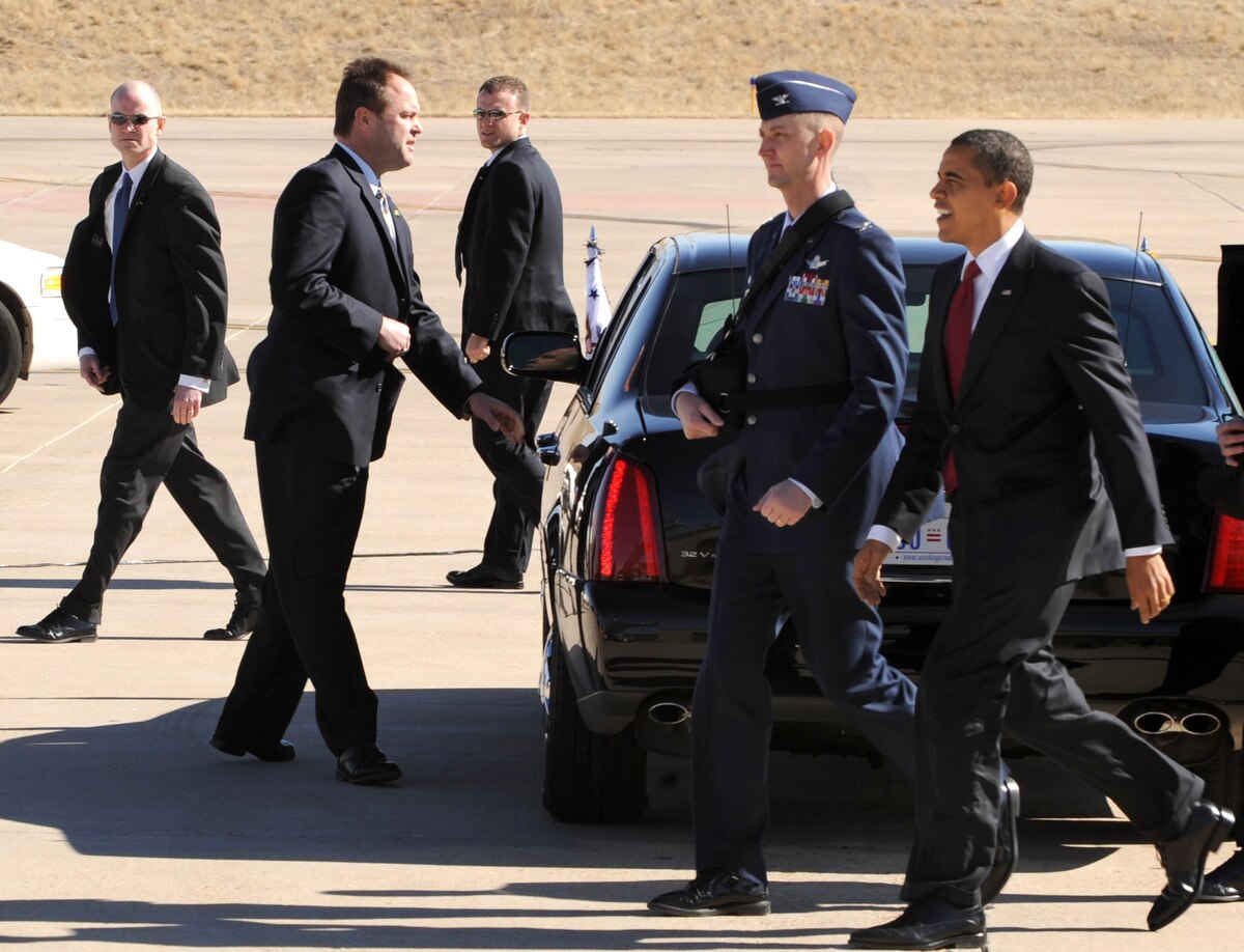 President and Vice President land at Buckley Published Feb. 17, 2009 By Staff Sgt. Sanjay Allen 460th Space Wing Public Affairs BUCKLEY AIR FORCE BASE, Colo. -- President Barack Obama landed here enroute to the Denver Museum of Nature and Science Feb. 17. Minutes before the President landed, Vice President Joe Biden arrived. This marks the first time the President and Vice President have landed at Buckley on the same day since President Bill Clinton and Vice President Al Gore landed here in the '90s. President Obama was in Denver to sign into law an economic stimulus plan designed to create millions of jobs and boost consumer spending